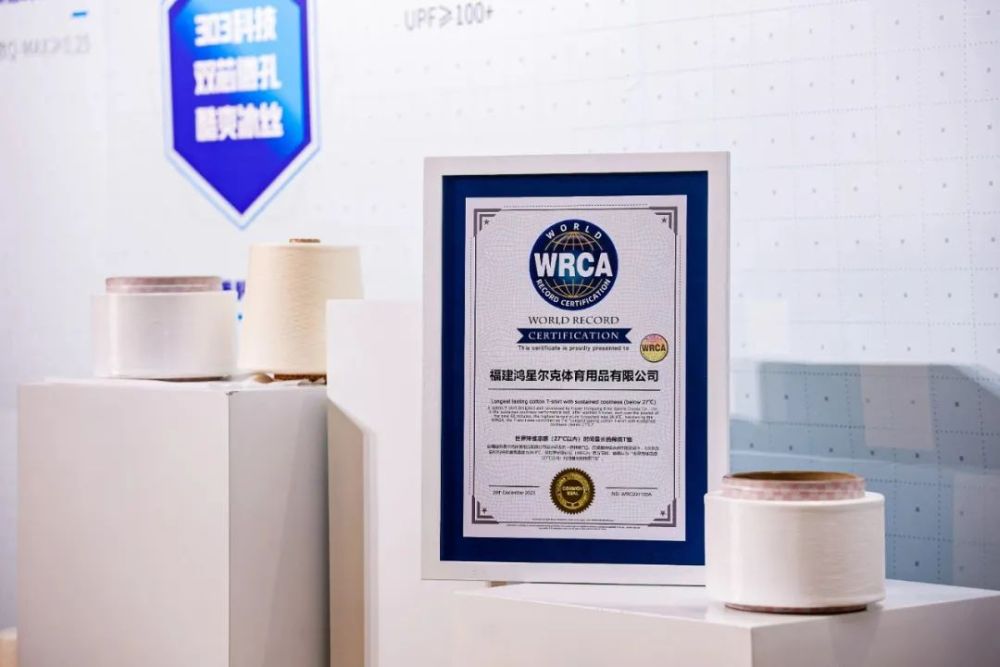 最终经过303天的持续努力,鸿星尔克攻下一城又一城,经历了一路上无数的曲折、失落、坚持以及重新的振奋最终换来了曙光,以鸿星尔克独创的“极地云冰棉”面料搭载全新“持续冰感科技”,摘得了峰顶耀眼的明珠——WRCA世界最长持续凉感纪录,“云冰T”是世界持续凉感(27度以内)时间最长的棉感T恤,将作为被认证的世界纪录案例载入《世界纪录大全》书籍,放进世界纪录认证官方文化馆展示,让鸿星尔克在世界舞台上展现出中国品牌的科技力量。