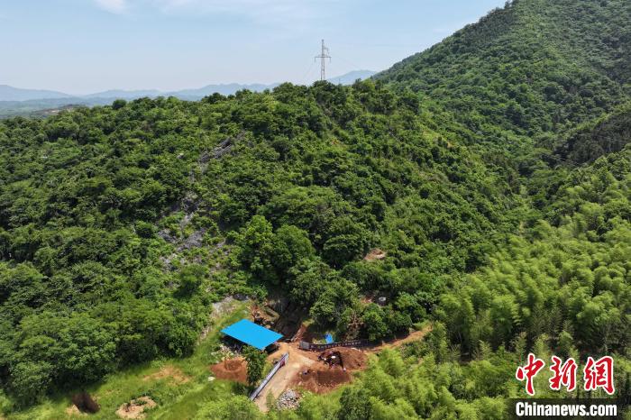 航拍华龙洞遗址考古发掘现场。(无人机照片)东至县委宣传部供图