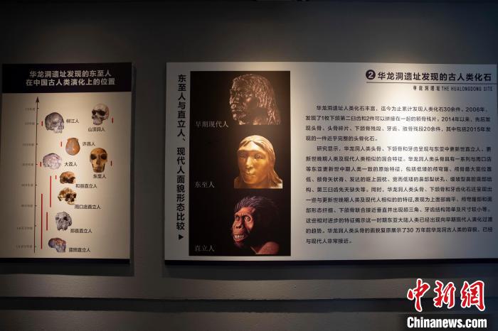 吴秀杰说,华龙洞古人类生存的年代为距今30万年左右,体质特征位于直立人和现代人之间,在演化上属于古老型智人,2015年命名为“东至人”。东至人是迄今为止在我国发现的唯一同时保存有完整面部和下颌骨的中更新世晚期人类化石,对于探讨东亚古人类的演化、分布与变异具有重要的价值。