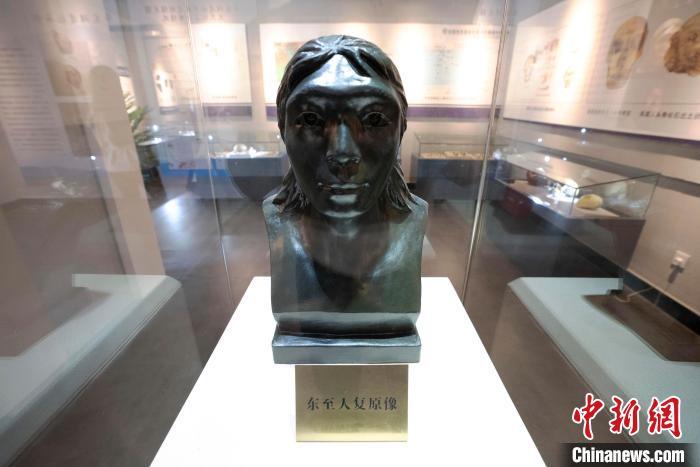 华龙洞遗址陈列馆展陈的东至人复原像。东至县委宣传部供图