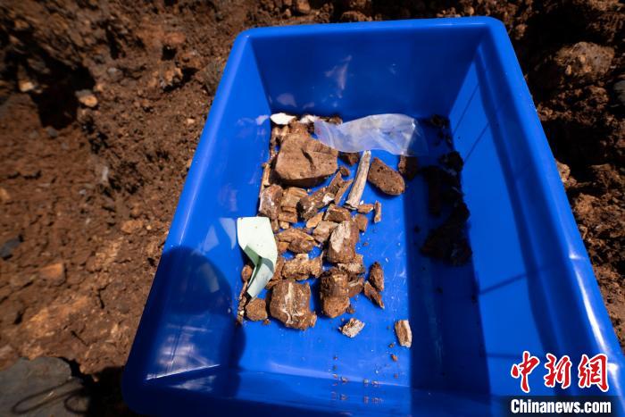 考古工作人员发掘出的一些动物遗骸化石。东至县委宣传部供图