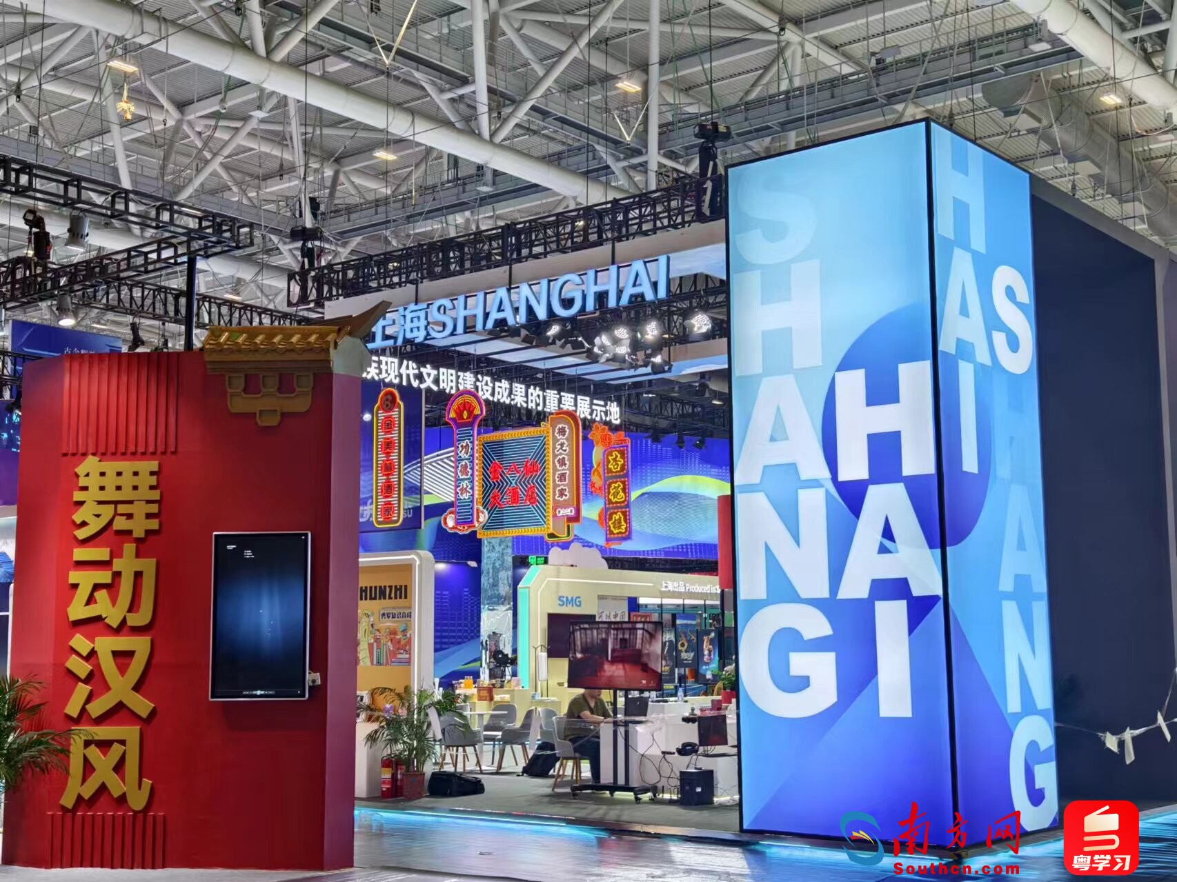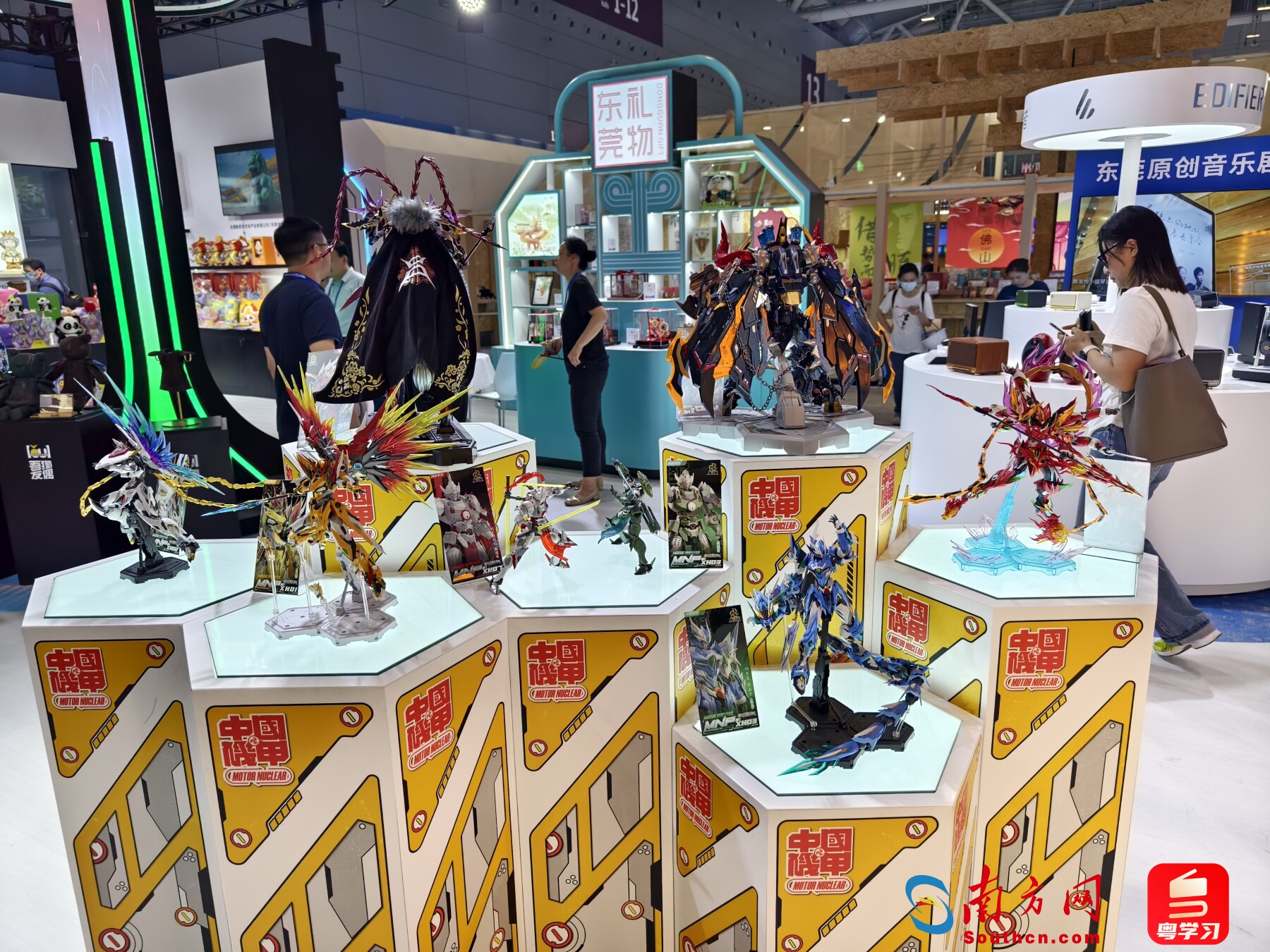 本届文博会,广东展团突出“文化+科技”,以“勇立潮头,推动文化产业高质量发展走在前列”为主题,统一形象、整体布局、突出交易,全省21个市、381家文化企业,协同文化央企以及香港、澳门,携2万件文化产品,在第13号馆“大湾区馆”集中亮相。