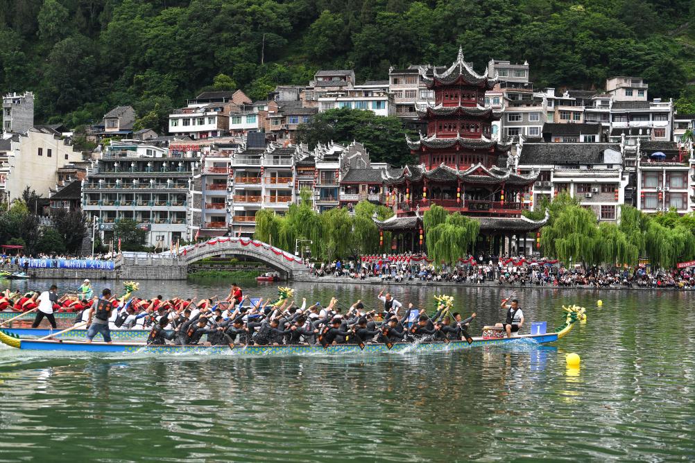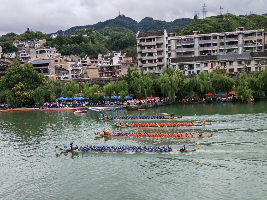 新华社贵阳6月12日电(记者李黔渝)“你追我赶赛龙舟,正是拼搏好时候。”端午节已经过了,但贵州镇远古城的龙舟赛还在激烈进行中。