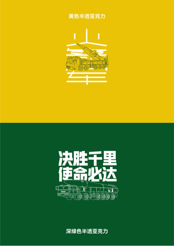 首先是征兵主题纪念挂件设计,设计内容依据创作的各军种海报中特有的设计元素进行再创作,其中包含陆军、海军、空军、火箭军字体样式设计的纪念章,概括性的表达字体内涵,同时辅以军种特有的色彩,强加认知意识。