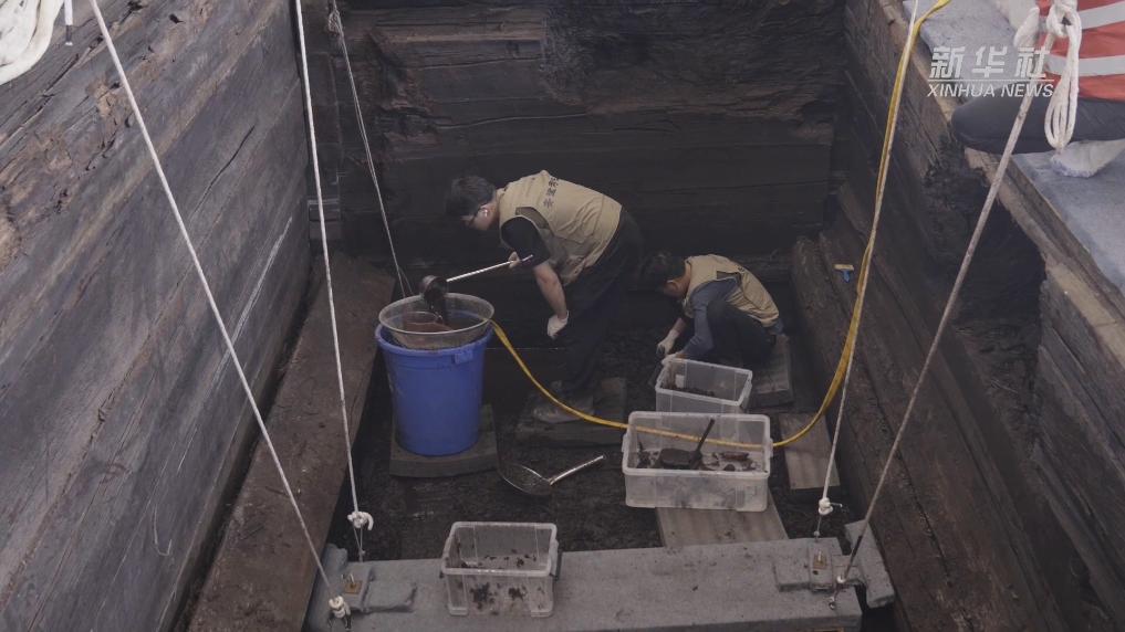 穿过一段斜长的墓道,这座恢弘的九室楚墓近在咫尺,余晖愈发耀眼,那一刻史书中的往事不再是冰冷的文字,它就在我们面前,成为触手可及又真实滚烫的历史。
