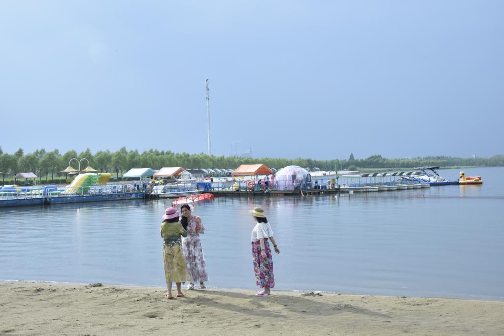 帐篷、阳光、沙滩……在位于黑龙江省哈尔滨市的呼兰河口湿地公园,一个个身着泳衣的游客逐浪戏水。水上飞鱼、水上小黄鸭等热门水上项目丰富多彩,孩子们的笑声在沙滩区回荡。