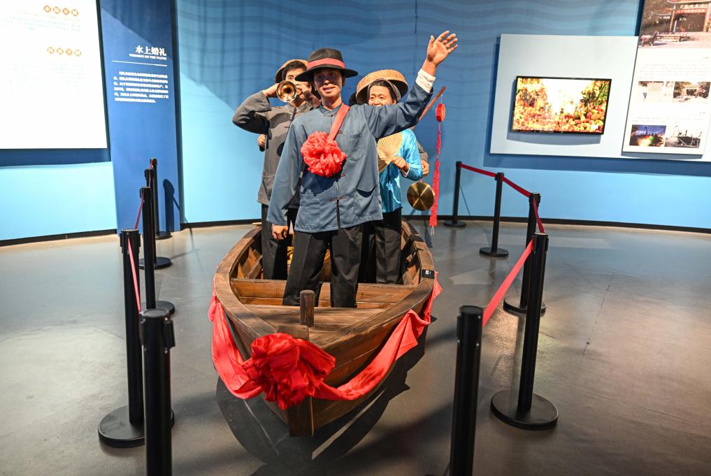 7月26日在海南疍家博物馆拍摄的展示疍家人举行水上婚礼的场景。