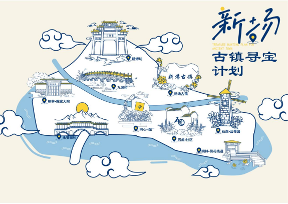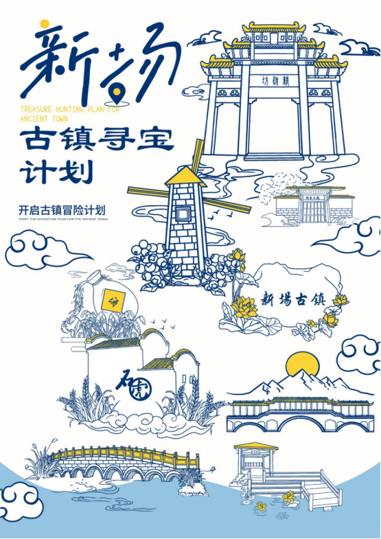 景点印章在旅游市场中具有一定的市场需求和优势,因此做了九个具有新场古镇特色的印章供游客打卡收集。