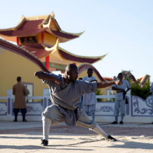 新华社卢萨卡8月14日电(记者彭立军)在赞比亚首都卢萨卡市郊,黄墙红瓦、飞檐翘角的中式庙宇院落内,有一群身着传统灰色练功服、脚蹬黑色布鞋的少林“洋弟子”。