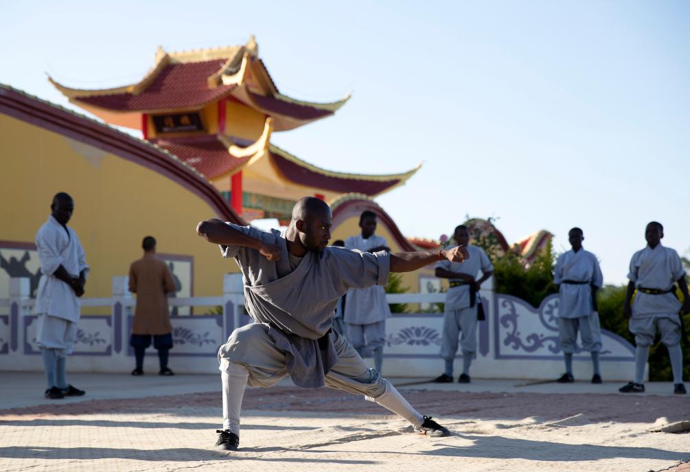 赞比亚少林寺文化中心目前也是中国嵩山少林寺非洲总部所在地。去年6月,首届非洲少林考功大赛在此举行。少林拳、象形拳、通背拳、七星拳……来自22个非洲国家的100余名少林“洋弟子”汇聚一堂,切磋武艺。这一年,少林非洲联合会正式成立,标志着中国少林文化在非洲的发展更为深入。
