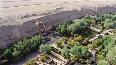 敦煌莫高窟窟区(无人机照片)。记者 陈斌 摄