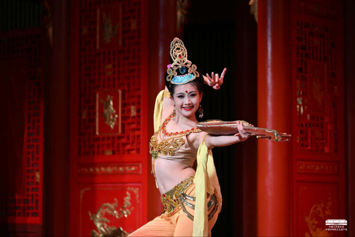 活动通过《凭栏仙女》《反弹琵琶》《六臂飞天》《敦煌长绸舞》《千手观音》等敦煌舞节目,不仅展现了“反弹琵琶”等最具代表性的敦煌舞姿,还通过脱胎于敦煌壁画的“飞天”“千手观音”等形象,再现敦煌艺术的美轮美奂。