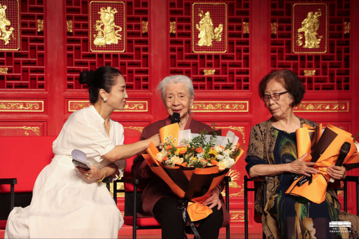 “花开敦煌·舞动千年”专场活动近日在中国工艺美术馆·中国非物质文化遗产馆举办,呈现著名艺术家、“永远的敦煌少女”常沙娜和敦煌舞教学体系创建人高金荣两位90岁高龄老艺术家的艺术合璧。