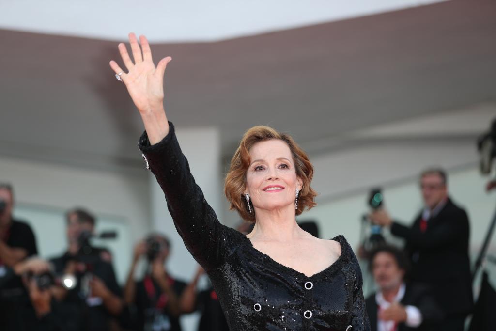 8月28日,在意大利威尼斯,西格妮·韦弗亮相开幕式红毯。