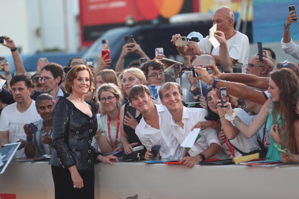 8月28日,在意大利威尼斯,西格妮·韦弗在开幕式后与影迷互动。