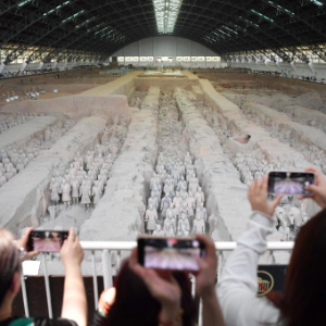 秦始皇陵和兵马俑坑考古发掘至今已逾半个世纪。在这块土地上,从秦兵马俑博物馆的建成开放,到秦始皇陵国家考古遗址公园的建设运营,秦始皇陵及兵马俑坑成为世界认识中华文明的名片。截至目前,秦始皇帝陵博物院累计接待海内外观众超过1.6亿人次。秦始皇陵文物已在49个国家和地区的近200个城市巡展277个场次,吸引2000万人参观。