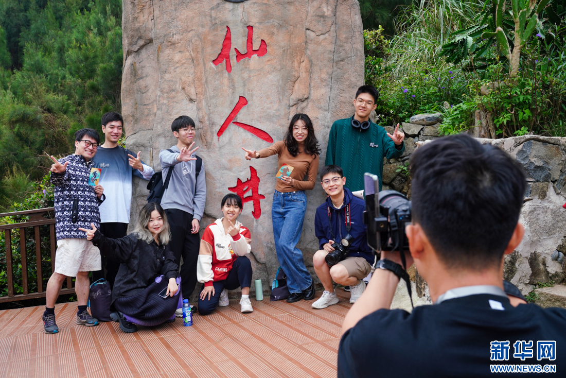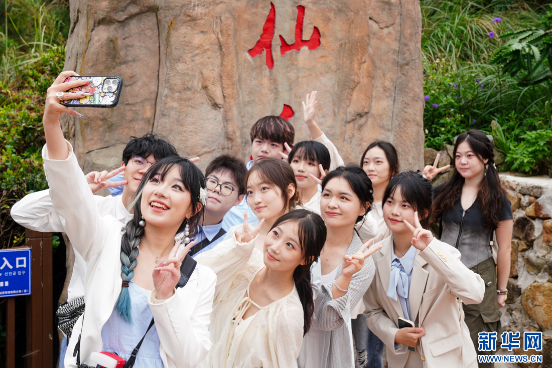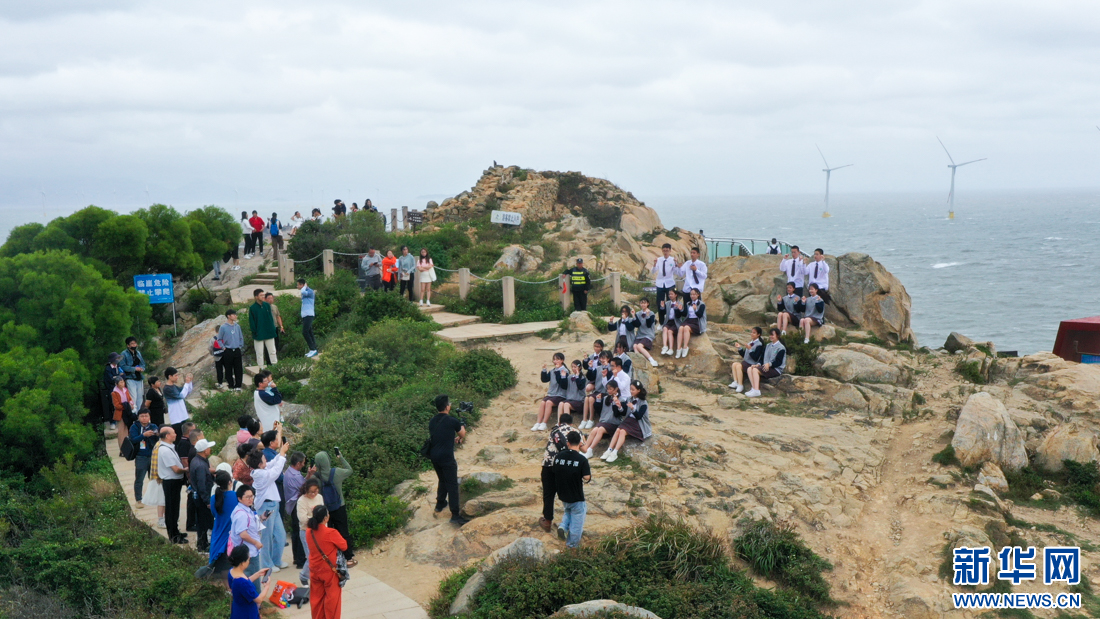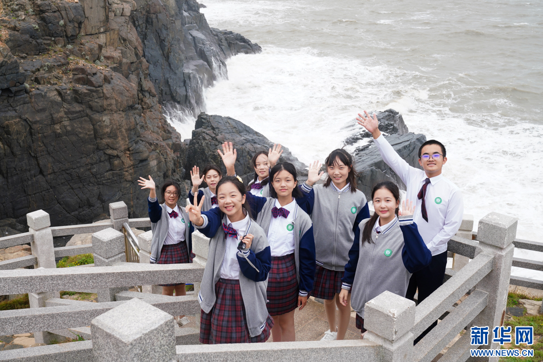 厦门六中博雅合唱团(阿卡贝拉团)学生在平潭仙人井景区打卡,感受海岛风情。新华网肖和勇摄