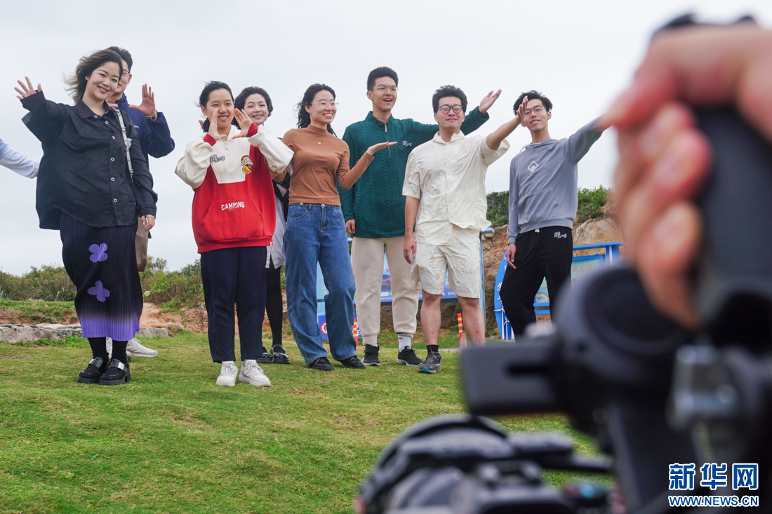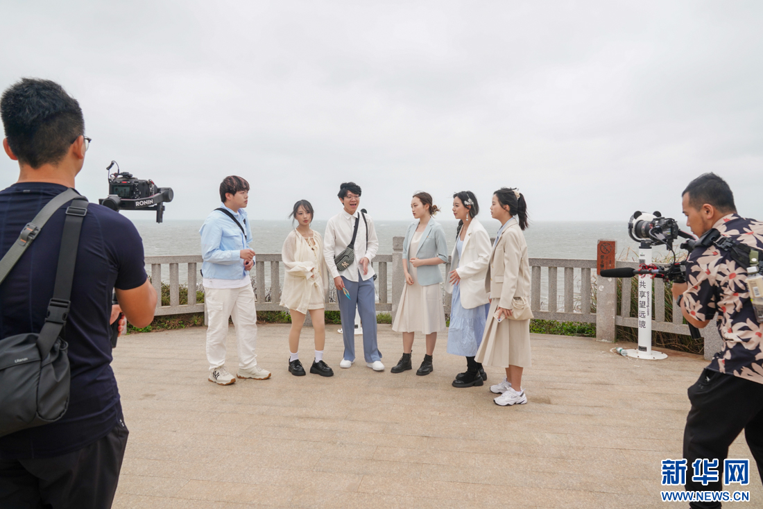 高校乐团在平潭仙人井景区录制主题阿卡贝拉Vlog。新华网肖和勇摄