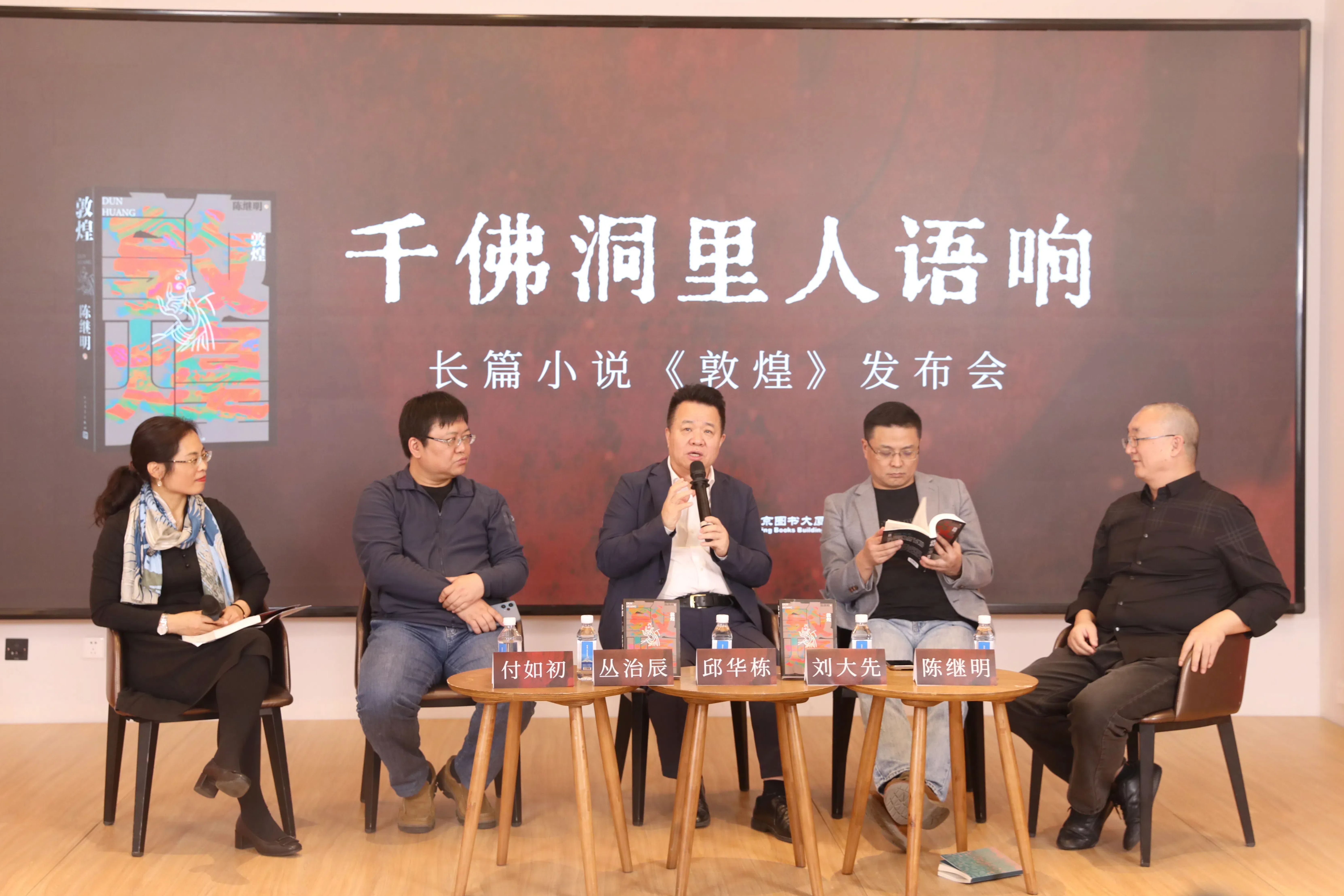 近日,著名作家陈继明的最新长篇小说《敦煌》发布会在北京图书大厦举办。该书由人民文学出版社出版,中国作协副主席、书记处书记邱华栋,中国社会科学院民族文学研究所研究员刘大先,北京大学中国语言文学系预聘副教授、研究员丛治辰等多位文学界知名人士出席发布会,并展开深入讨论。