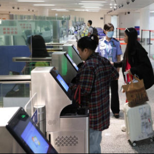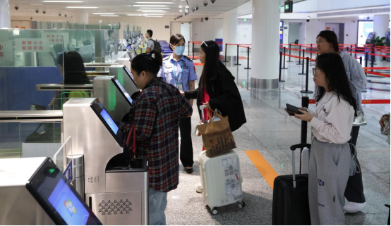5月9日,入境旅客在海口美兰边检站使用快捷通道通关。 新华社记者 杨冠宇 摄