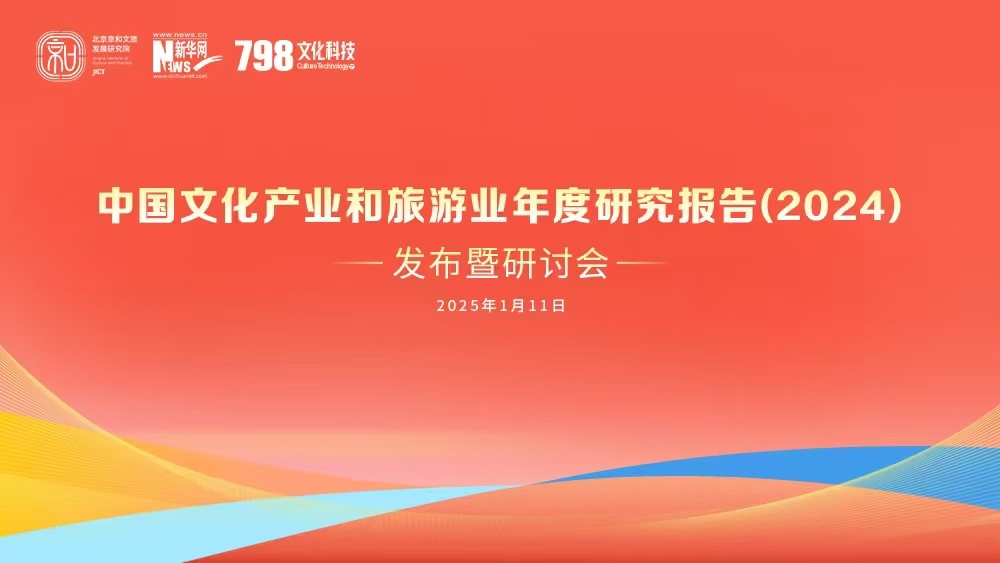 1月11日,由中国文化产业协会指导,北京京和文旅发展研究院、新华网文化产业研究院、北京七九八文化科技有限公司主办,微博政务提供战略合作支持的中国文化产业和旅游业年度研究报告(2024)发布暨研讨会在北京798·751园区成功举办。百余位文化和旅游领域知名专家学者及企业家代表到场,共同见证《中国文化产业和旅游业年度研究报告(2024)》的发布。
