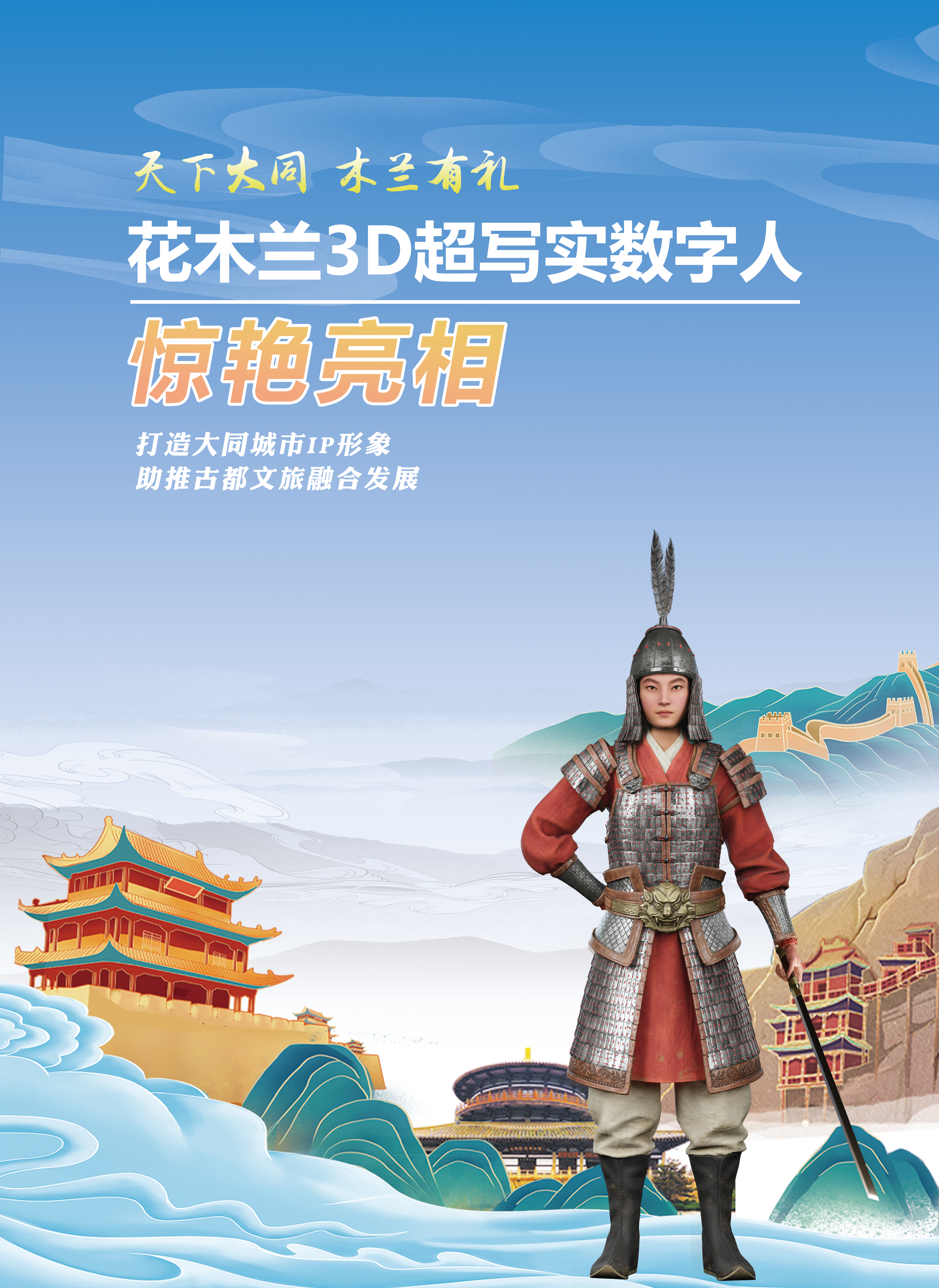 历史文化研究显示,木兰传奇故事与大同紧密相连。近年来,大同市深入挖掘历史文化资源,“文化之城”建设生机勃勃。2024年,大同市委宣传部与中华书局签署战略合作协议,大同日报传媒集团与古联(北京)数字传媒科技有限公司签署“花木兰3D超写实数字人”定制开发及衍生服务合作协议,为木兰文化的数字化发展注入强大动力。