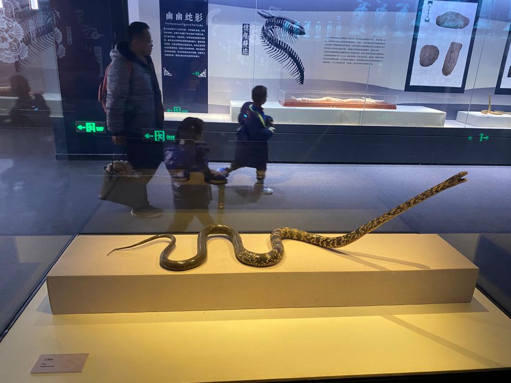 作为脊椎动物的成员,起源自陆生蜥蜴的蛇类也在演绎着别样的精彩。在紧邻中央展厅的临展厅,同步亮相的“灵蛇献瑞——2025乙巳蛇年生肖文物大联展”借着中国农历蛇年到来的契机,吸引不少观众在观“龙”后又来寻“蛇”。