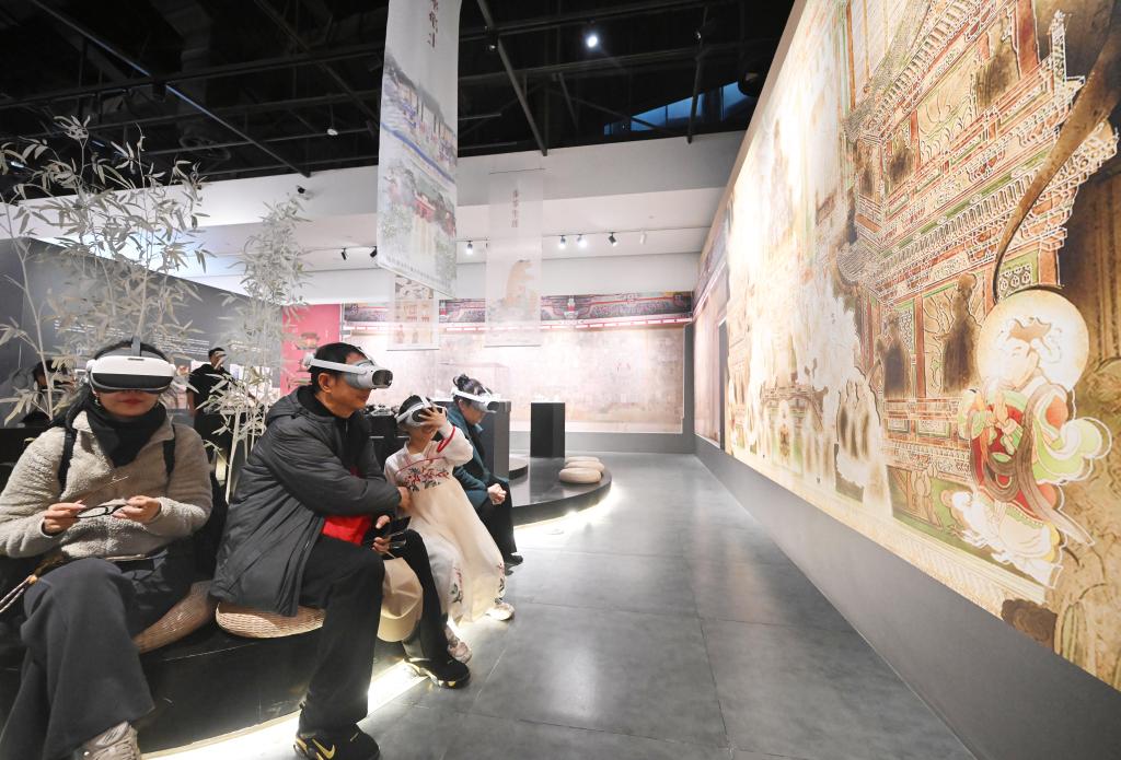 新华社武汉2月5日电(记者喻珮)戴上VR眼镜,一处坐落在深山中的古建筑群映入眼帘,跟随住持僧人“清宝”一起踏上高耸陡峭的百级台阶,走过山门、钟鼓楼、大雄宝殿……这是中国建筑科技馆正在展出的“芥子须弥·开化——高平开化寺宋代建筑与壁画数字艺术展”中的虚拟场景。该展览于春节期间亮相武汉,吸引大批观众参观。