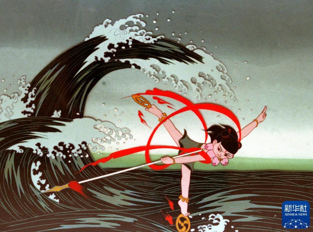 1979年,上海美术电影制片厂拍摄的彩色宽银幕动画片《哪吒闹海》。这是动画片中哪吒与海龙王的造型。 1979年