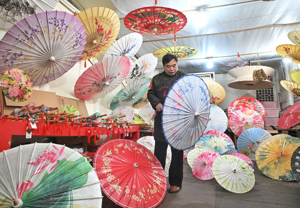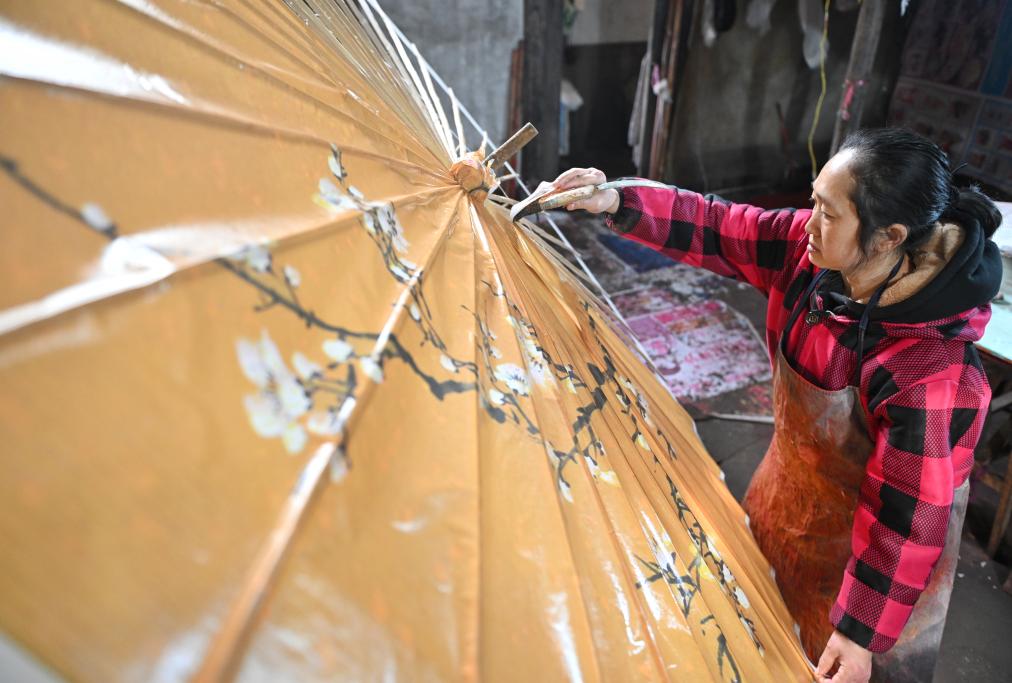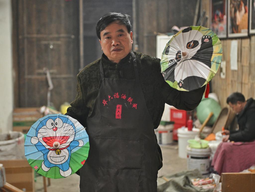 68岁的毕六福从小跟随长辈学习制伞技艺