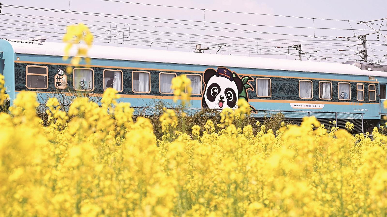 张琳娟乘坐的是近段时间开行的Y472次“熊猫专列·什邡号”旅游列车。“除了此趟列车,我们还开行了罗平花海专列、梯田花海专列等。线路串联了自然与人文景观,既可以赏金黄花海、观壮美梯田、看建水古城,也可以参与农事体验、观看民俗表演。”国铁成都局集团有限公司成铁商旅西南铁旅专列组工作人员周子豪介绍。