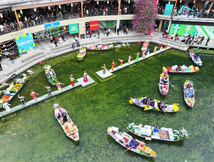 作为本届“广西三月三”活动主会场,位于南宁的民歌湖国际音乐小镇经升级改造后,变身广西文旅新地标。新民歌湖筹建中心负责人杨琳介绍,小镇定时定点呈现音乐市集演出、内湖水上演出等活动,推出“有得食”水上市集、“有得耍”潮玩市集、“有得饮”新茶饮主题桥等,并通过现场互动、直播展演等方式,打造吃、购、游、娱一体化消费场景。