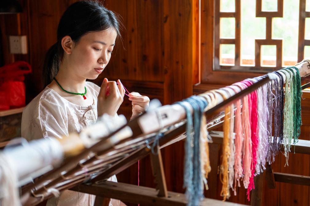 绣庄通过开展非遗进校园、刺绣展演、刺绣体验等活动,让越来越多的人了解桃源刺绣的魅力。肖瑶还不定期举办刺绣培训班,免费向村民传授刺绣技艺,为绣庄周边的妇女、返乡学生提供工作岗位,带动村民在家门口就业。为了给桃源刺绣赢得更广阔的生存空间,肖瑶带领团队开发文创产品,制作耳环、胸针、项链等饰品,把桃源刺绣带入大众视野,用青春焕新家乡非遗。