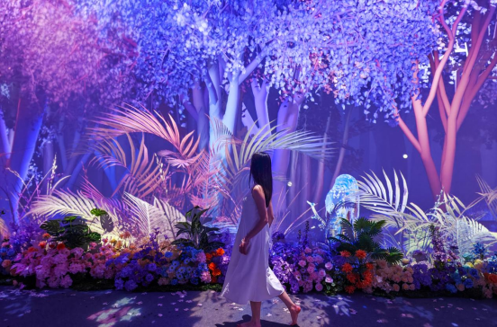 新世纪广场上,300平米的城市光影空间,构建了三个平行时空,通过光影、交互等手段,打造超现实主义东方文化美学展。同时,融合科技感、艺术性与文化叙事,呈现“穿越古今未来”的奇幻体验,为樱花季进行数字艺术升级。