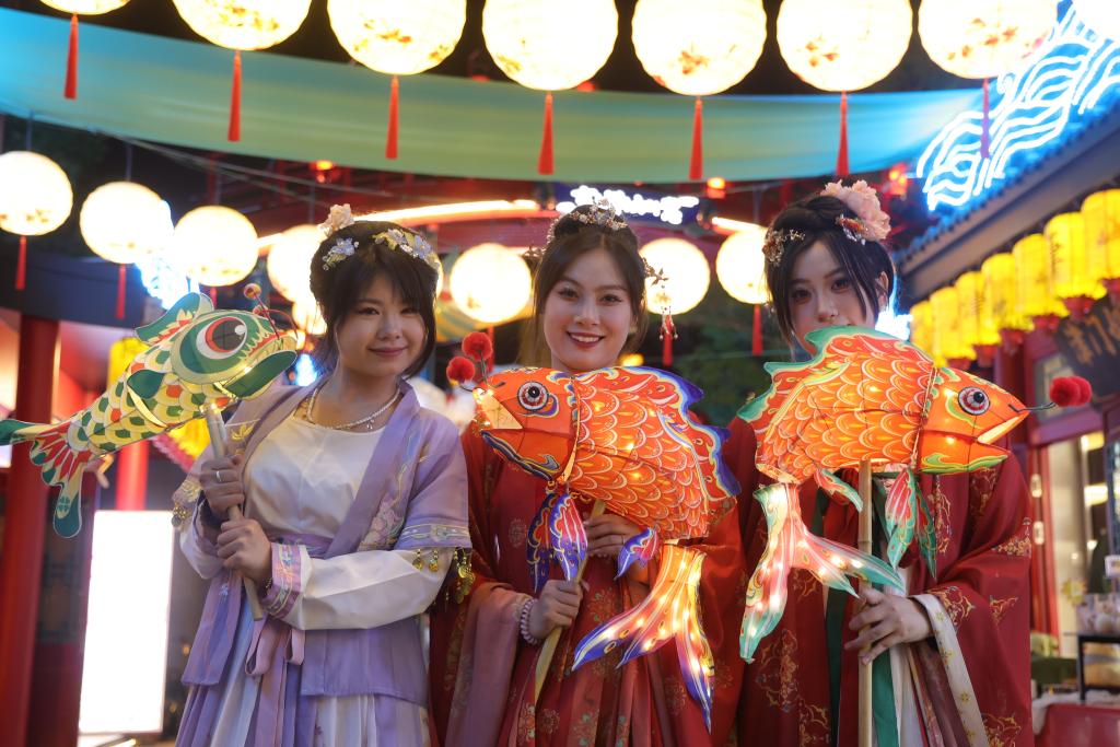 夜幕降临,头顶盏盏鱼灯次第亮起,游人漫步巷内,在光影流转中邂逅民俗文化。国潮电音派对正热力上演,传统民乐旋律与现代电音激情碰撞,不少年轻人随节奏舞动。
