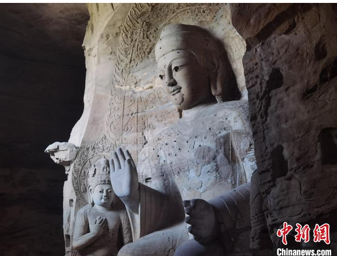 云冈石窟第3窟(资料图)。中新社记者 胡健 摄
