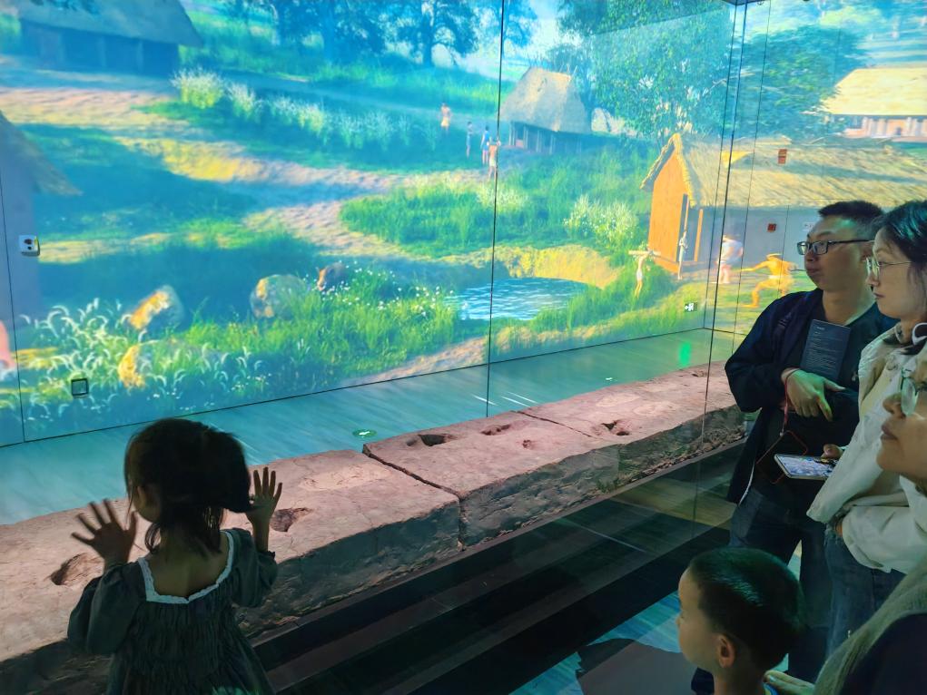 18日下午,观众在玉架山考古博物馆互动屏上回答问题,学习考古知识。新华社记者 冯源 摄