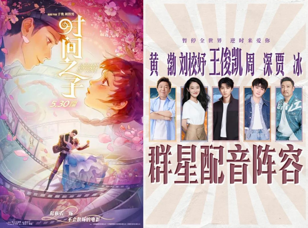 5月30日上映的动画电影《时间之子》,由王俊凯、刘校妤、周深、黄渤、贾冰等众明星配音。影片以冷面杀手十七与渔村少女千晓因上古神秘圣物时轮结缘为开端,展开二人的奇幻浪漫冒险之旅。无论是时间停滞时粒子流动的特效,还是都市、荒原、汪洋等空间的转换,都构建出了一个充满想象力的世界。