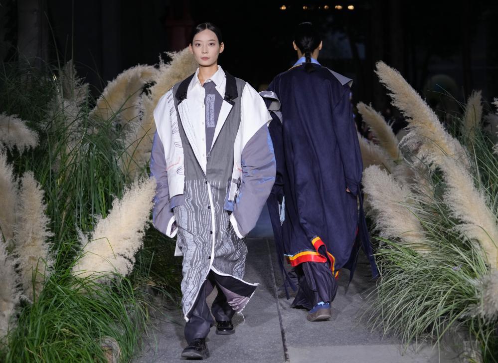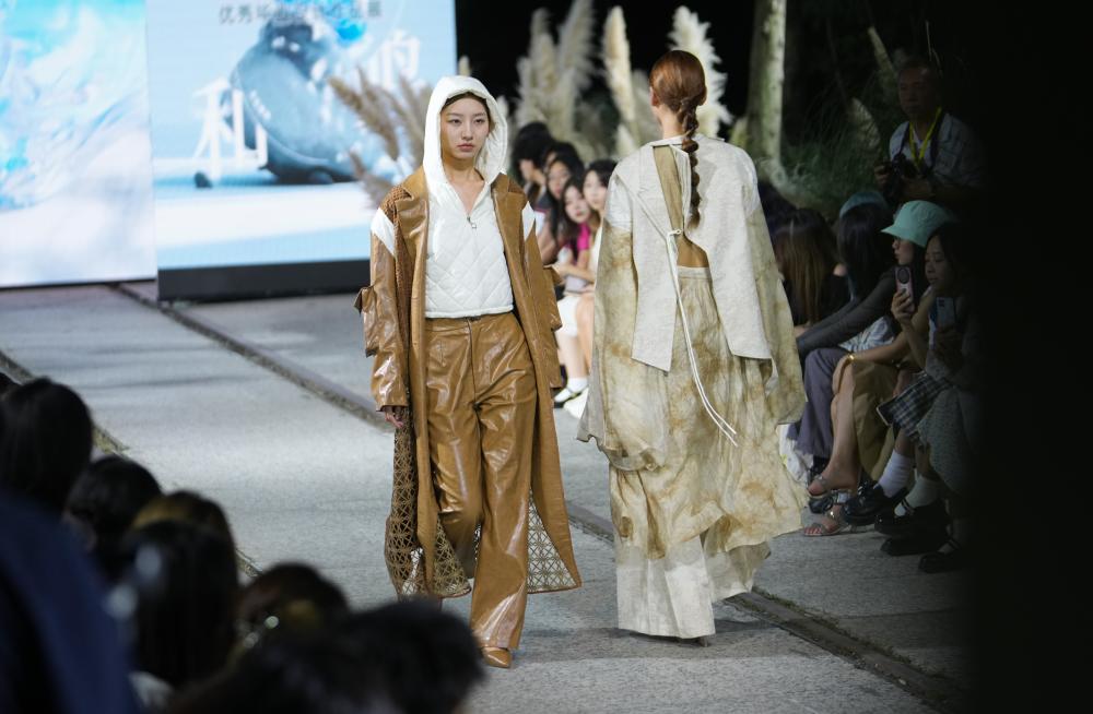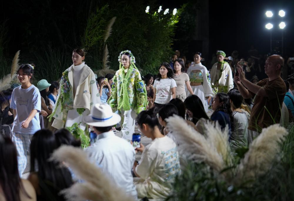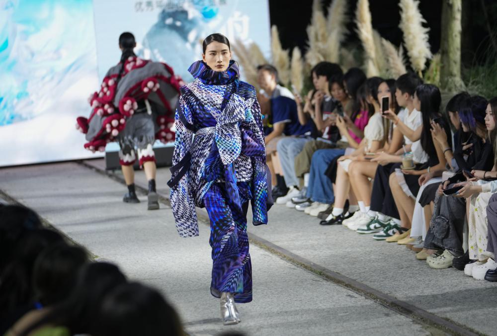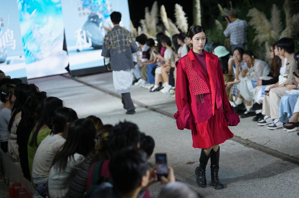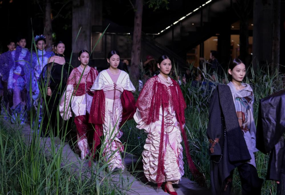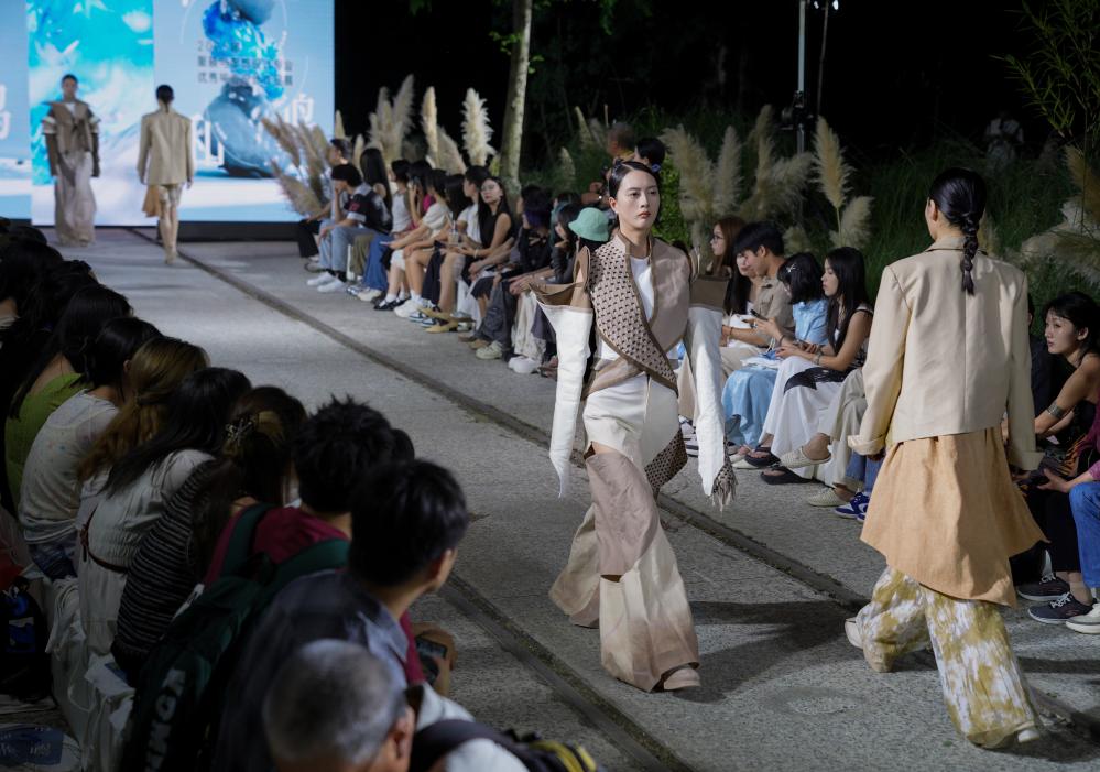 当日,以“溯光和鸣”为主题的四川师范大学服装与设计艺术学院2025届优秀毕业设计作品秀在成都市中车·源STAGE产业园举行,共38位毕业生设计的159套服饰进行了展示。
