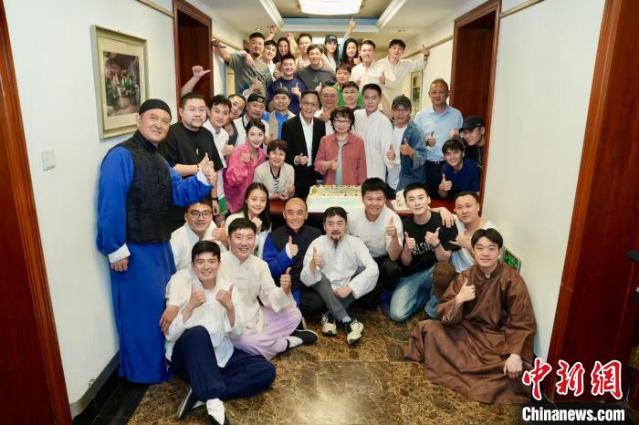 6月2日,北京人艺话剧《天下第一楼》迎第600场演出,主创后台合影。 史春阳 摄