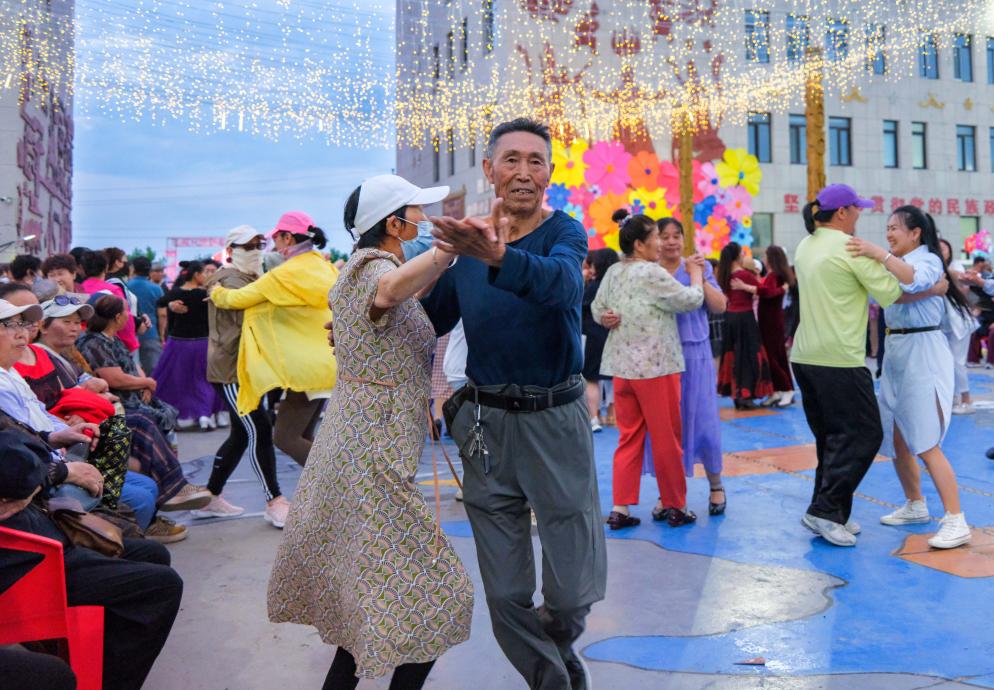 7月9日,在内蒙古呼伦贝尔市鄂温克族自治旗辉苏木,游客在“伊德喜”夜市上跳舞。