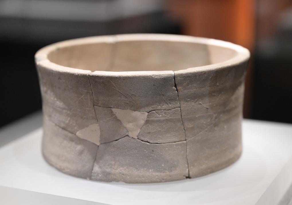 这是一件出土自雄安古州城遗址的战汉时期的陶量(7月28日摄)。