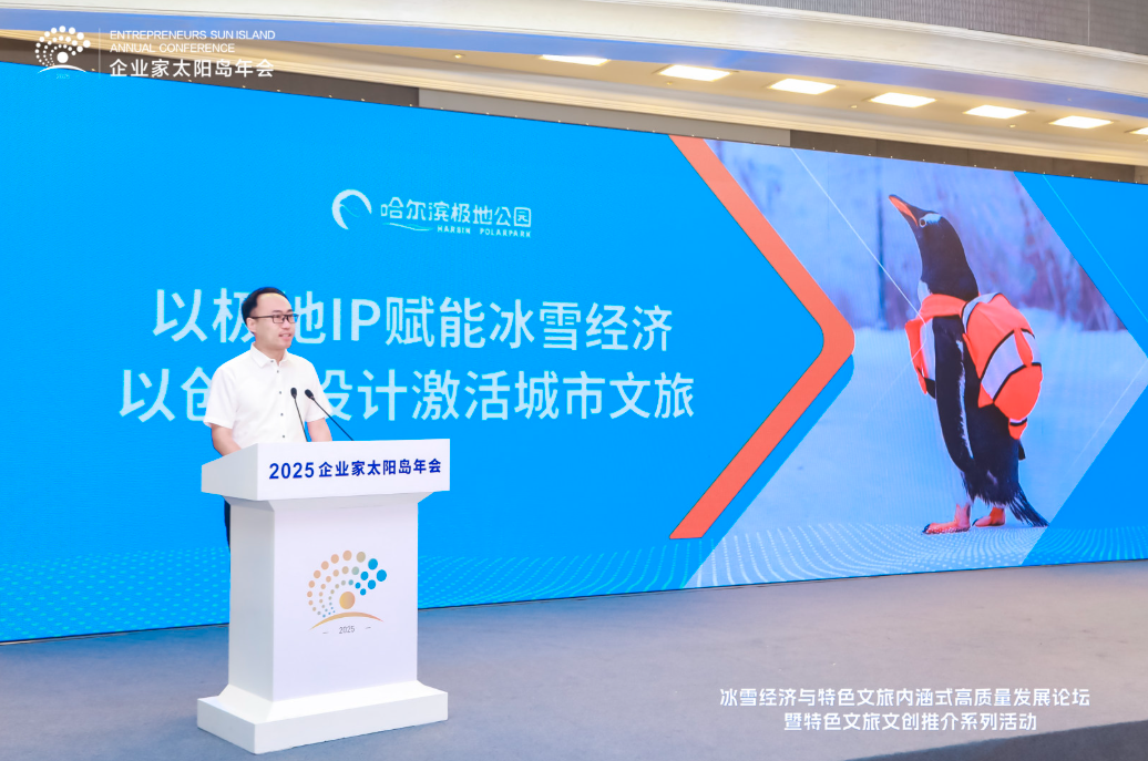 8月2日,2025太阳岛企业家年会“冰雪赋能发展 文旅创引未来”冰雪经济与特色文旅内涵式高质量发展论坛在哈尔滨举行。图为哈尔滨圣亚旅游产业发展有限公司副总经理张志铭发表演讲
