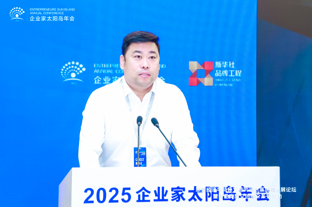 8月2日,2025太阳岛企业家年会“冰雪赋能发展 文旅创引未来”冰雪经济与特色文旅内涵式高质量发展论坛在哈尔滨举行。图为新华网党委书记、董事长储学军致辞