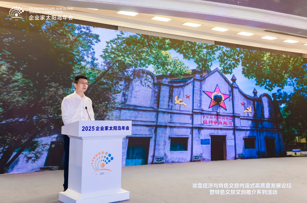 8月2日,2025太阳岛企业家年会“冰雪赋能发展 文旅创引未来”冰雪经济与特色文旅内涵式高质量发展论坛在哈尔滨举行。瑞金市委副书记李志坚作瑞金市文旅城市推介