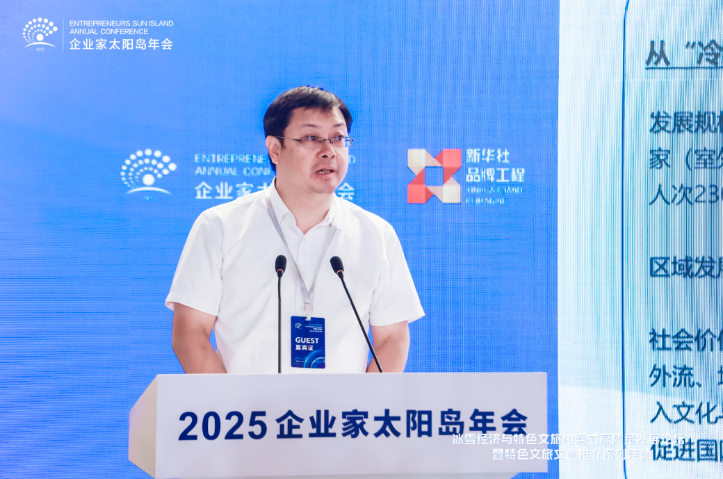 8月2日,2025太阳岛企业家年会“冰雪赋能发展 文旅创引未来”冰雪经济与特色文旅内涵式高质量发展论坛在哈尔滨举行。图为中国科学院地理科学与资源研究所研究员、中国冰雪产业研究中心主任、文旅部研究基地首席专家李宇发表主旨演讲