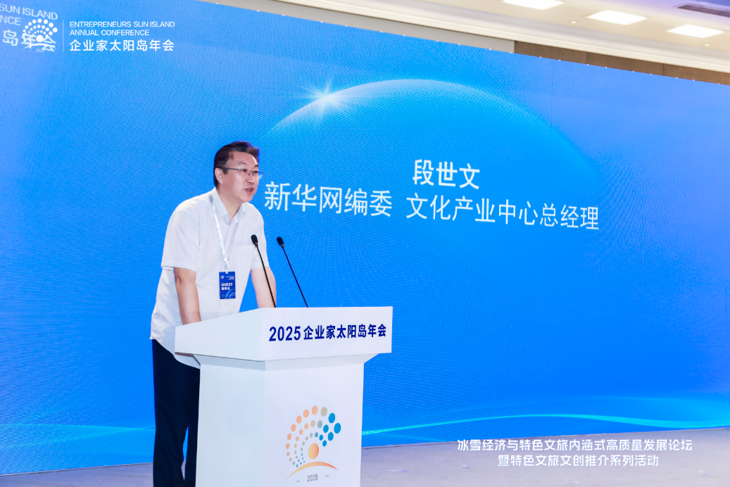 8月2日,2025太阳岛企业家年会“冰雪赋能发展 文旅创引未来”冰雪经济与特色文旅内涵式高质量发展论坛在哈尔滨举行。图为新华网编委、文化产业中心总经理段世文致辞