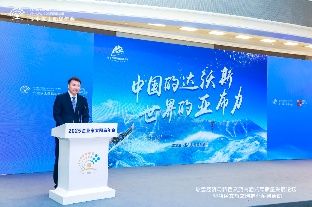 8月2日,2025太阳岛企业家年会“冰雪赋能发展 文旅创引未来”冰雪经济与特色文旅内涵式高质量发展论坛在哈尔滨举行。图为哈尔滨市亚布力管理委员会文旅推荐官齐林发表演讲