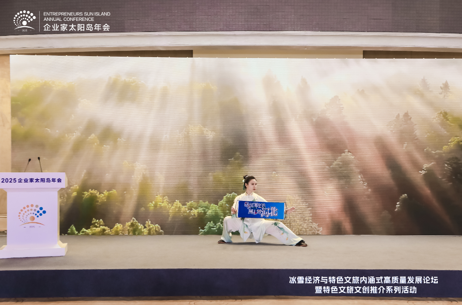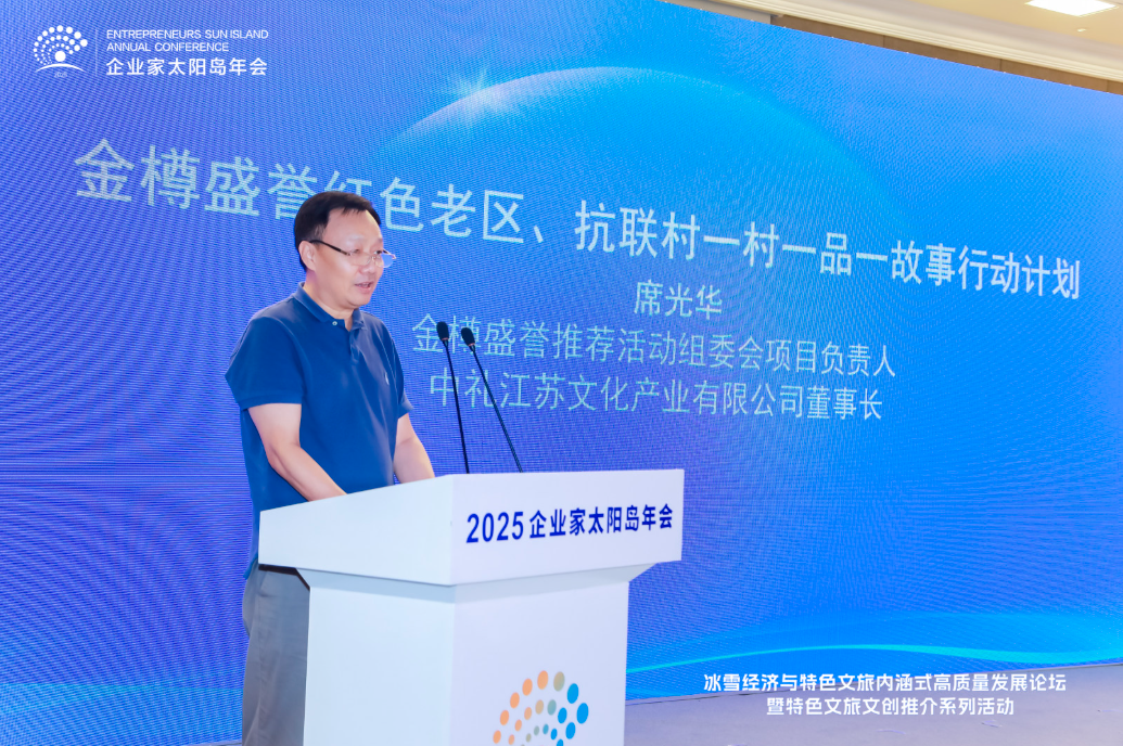 8月2日,2025太阳岛企业家年会“冰雪赋能发展 文旅创引未来”冰雪经济与特色文旅内涵式高质量发展论坛在哈尔滨举行。图为金樽盛誉推荐活动组委会项目负责人、中礼江苏文化产业有限公司董事长席光华作特色文旅推介