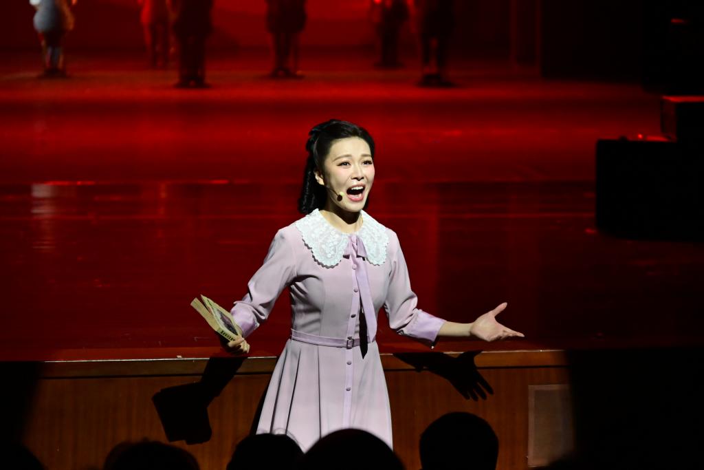 舞台上,苗族群舞《苗女出嫁》的红伞如红云翻涌,芭蕾舞与小合唱交叠,人物命运与悲欢有了更强烈的画面感。